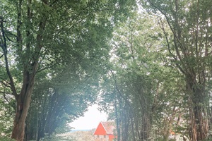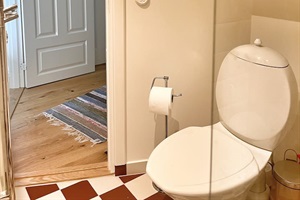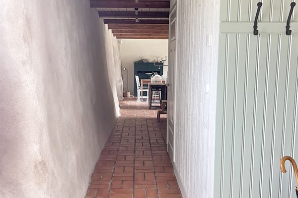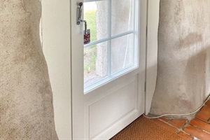 From the garden, you have a view over the apple orchards down towards the sea. The sheltered inner courtyard is perfect for summer evenings, with outdoor furniture and a grill. There is also ample parking space for several cars.