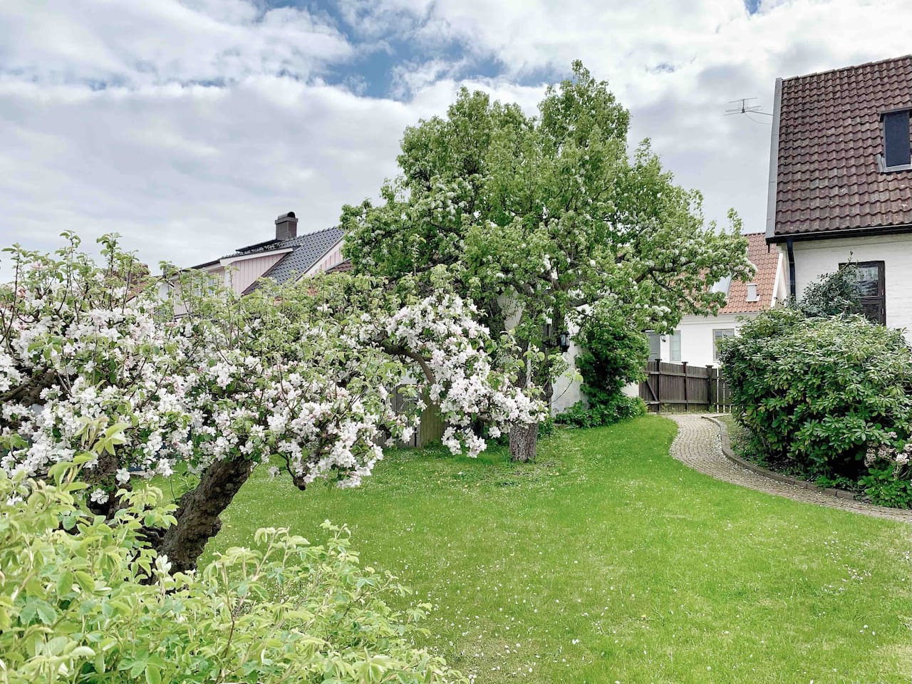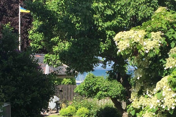 The enclosed garden with sea view is the heart of the property and offers both sun and shade throughout the day and full privacy within the fenced plot.